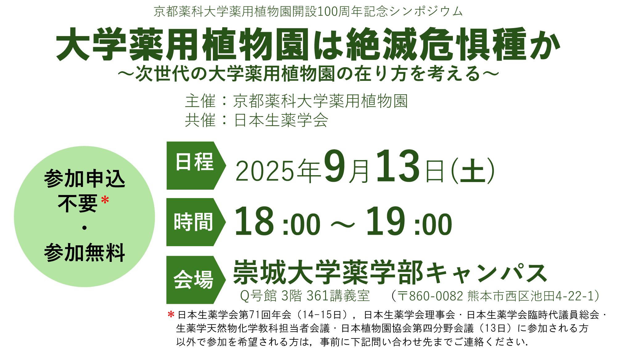 ◆終了しました◆ 京都薬科大学薬用植物園 開設100周年記念シンポジウム